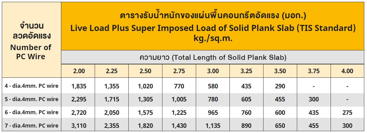 แผ่นพื้นคอนกรีตอัดแรงเหมาะกับการติดตั้งในอาคารทั่วไปที่มีช่วงพาดระหว่างคานสูงสุดถึง 4 เมตร สามารถติดตั้งได้รวดเร็วโดยนำมาเรียงชิดติดกัน จากนั้นเทคอนกรีตทับหน้าเพื่อทำพื้น เมื่อคอนกรีตรวมเป็นเนื้อเดียวกับแผ่นพื้นแล้วจะทำให้เป็นส่วนหนึ่งของโครงสร้างรับน้ำหนัก แผ่นพื้นชนิดนี้มีความกว้าง 35 ซม. และหนา 5 ซม.